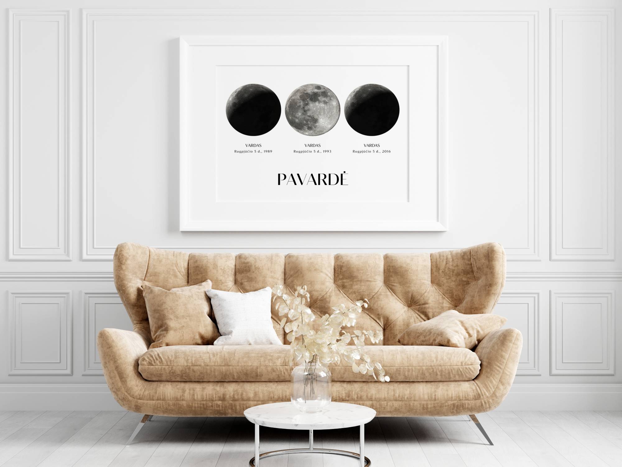 2. Sukuriamas žvaigždėlapio maketas spaudai įtraukiant sukurtą dangaus vaizdą, vardus bei jūsų norimą citatą.