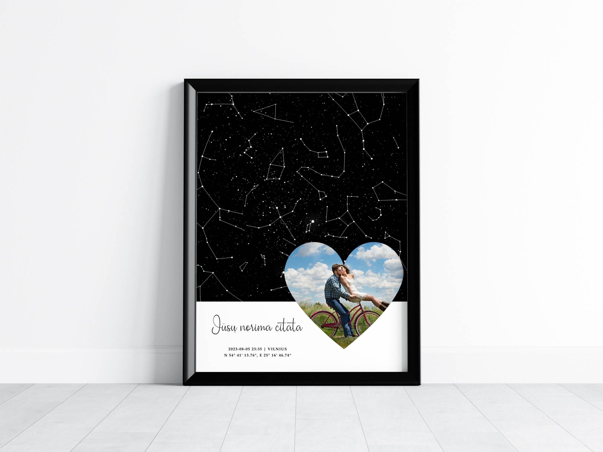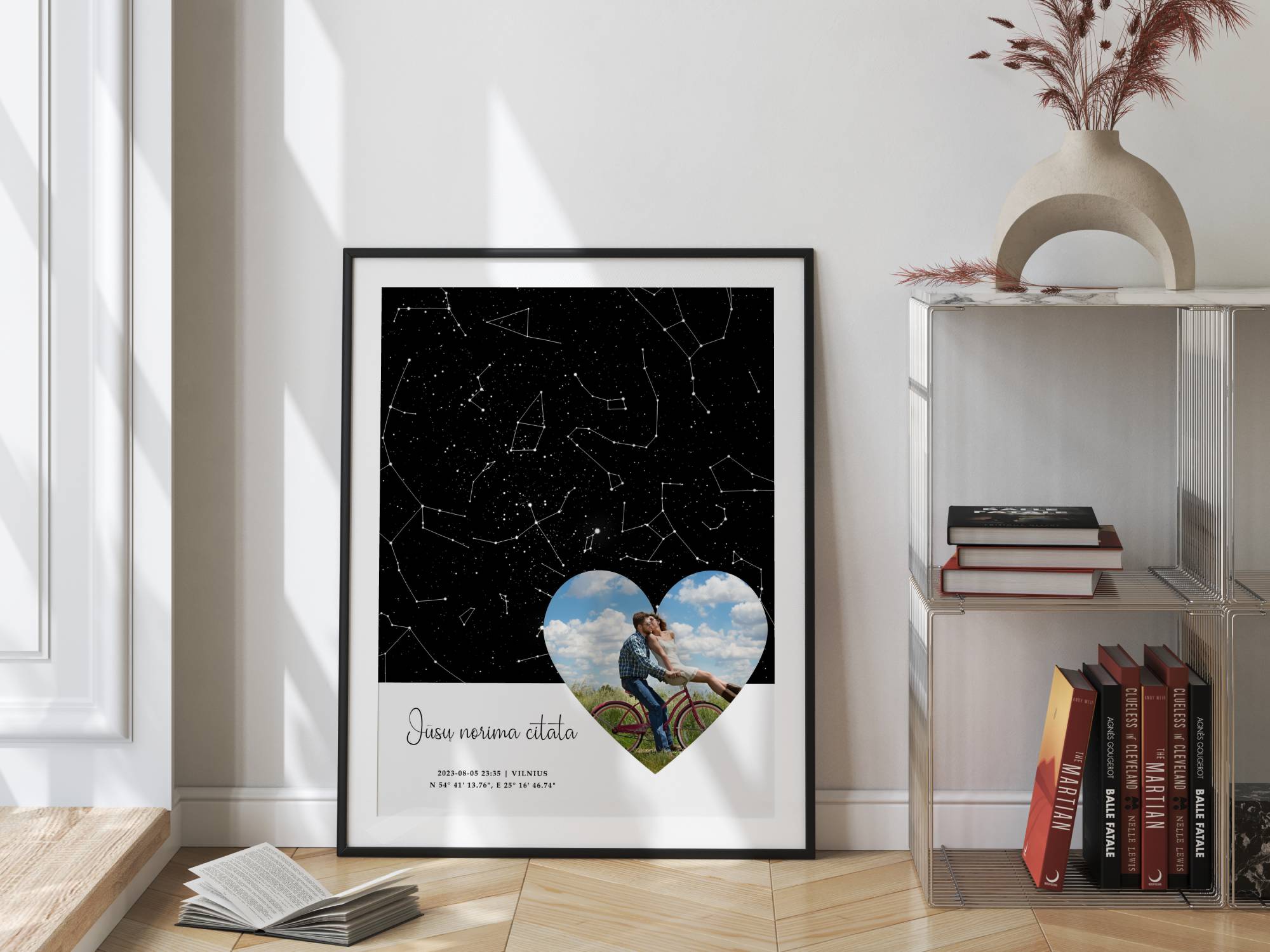 Žvaigždžių žemėlapiai yra puikus būdas įamžinti ir atvaizduoti, kaip žvaigždės išsidėstė ypatingais jūsų gyvenimo momentais, pavyzdžiui vaiko gimimo, pirmo pasimatymo ar vestuvių. Kiekvienas plakatas yra unikalus ir asmeninis, nes: