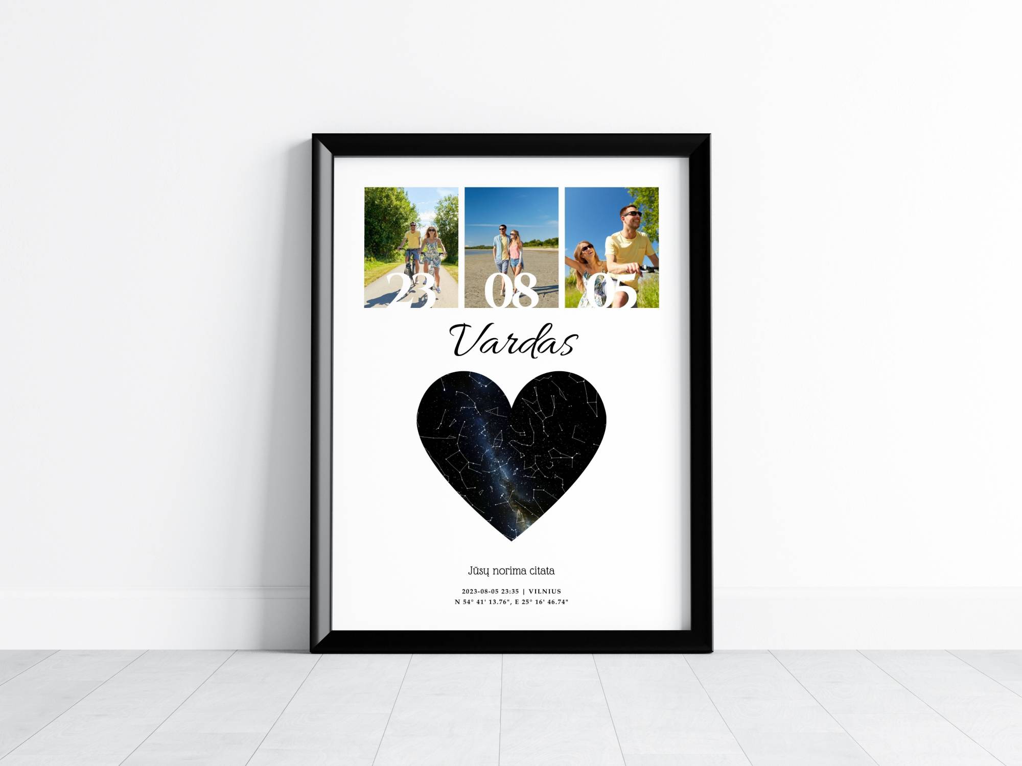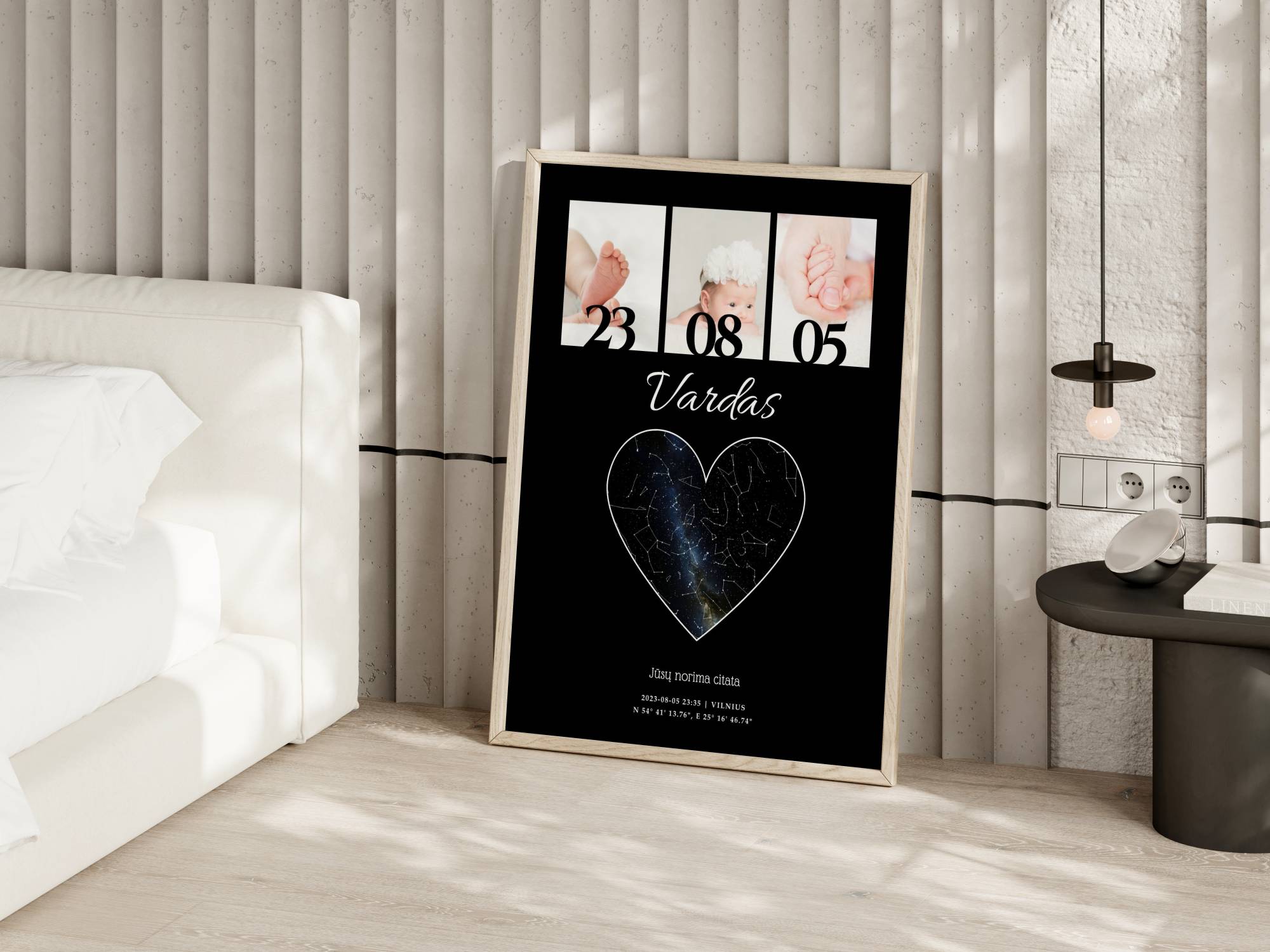 Žvaigždžių žemėlapiai yra puikus būdas įamžinti ir atvaizduoti, kaip žvaigždės išsidėstė ypatingais jūsų gyvenimo momentais, pavyzdžiui vaiko gimimo, pirmo pasimatymo ar vestuvių. Kiekvienas plakatas yra unikalus ir asmeninis, nes: